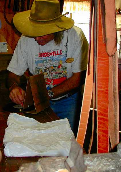 One of the Birdsville Locals with a old phonograph player made from cardboard